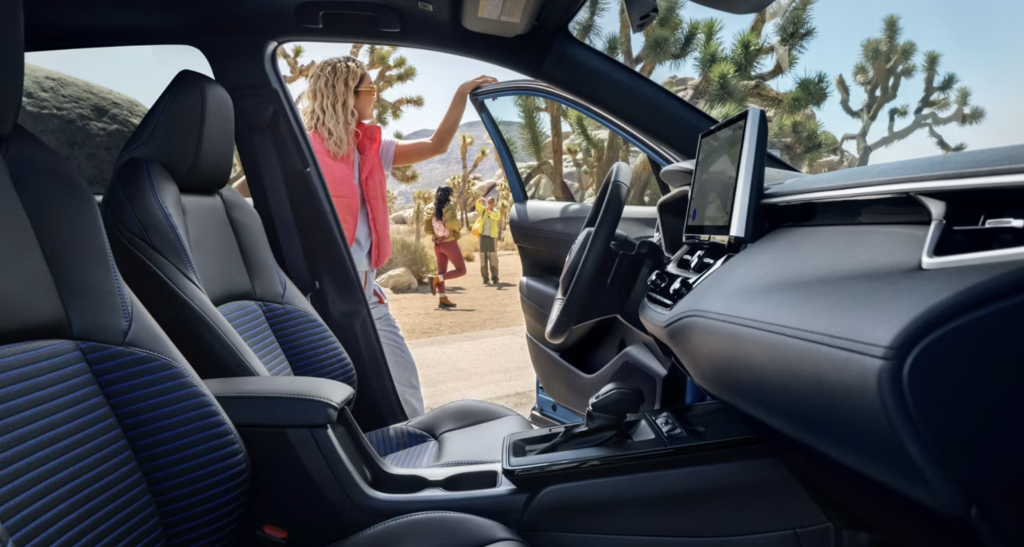 Budget-friendly does not mean bare-bones, and that is another reason the Corolla Cross works so well as a first-time buyer SUV. Toyota’s crossover overview says the 2026 Corolla Cross offers up to 24 cubic feet of cargo space and up to 32 combined MPG on gas versions, while the official model site highlights adaptable 60/40 rear seats, available heated features, rear-seat vents, and larger available digital displays. Panama City Toyota’s own 2026 Corolla Cross page also points to smartphone connectivity and a comfortable cabin built around daily ease of use. Those are the right strengths for a first crossover. This SUV is not trying to be flashy first. It is trying to make ownership feel easy.