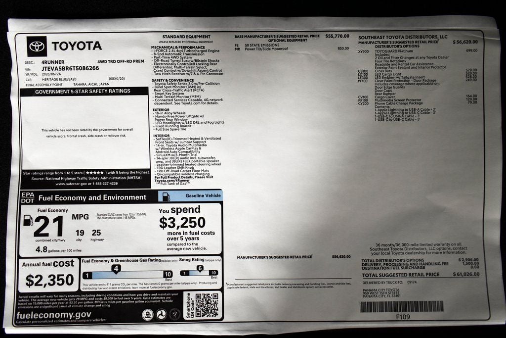 2026 Toyota 4Runner TRD Off-Road Premium 4D Sport Utility 2.4L 4-Cylinder 4WD