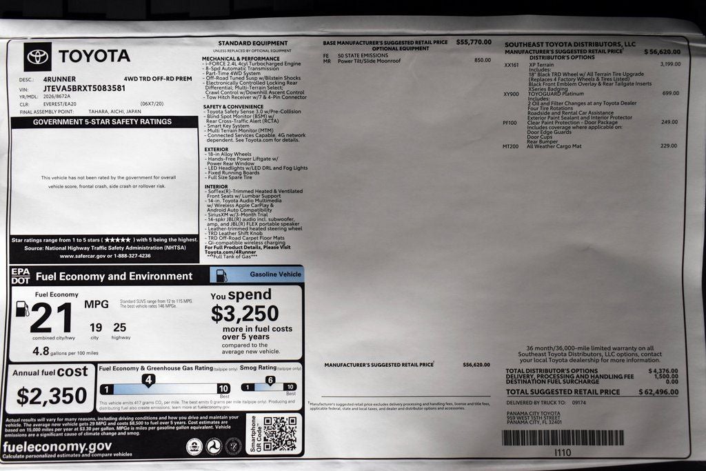 35. Projected EPA-estimated 20 city/26 hwy/22 combined mpg rating for 2026 4Runner SR5 RWD, TRD Sport RWD and TRD Sport Premium RWD; projected EPA-estimated 19 city/25 hwy/21 combined mpg rating for 2026 4Runner SR5 4WD, TRD Sport 4WD, TRD Sport Premium 4WD, TRD Off-Road 4WD and TRD Off-Road Premium 4WD; projected EPA-estimated 20 city/24 hwy/22 combined mpg rating for 2026 4Runner Limited RWD; projected EPA-estimated 20 city/24 hwy/21 combined mpg rating for 2026 4Runner Limited 4WD; and projected EPA-estimated 23 city/24 hwy/23 combined mpg rating for 2026 4Runner TRD Off-Road Hybrid 4WD, TRD Off-Road Premium Hybrid 4WD, Limited Hybrid 4WD, Platinum, TRD Pro and Trailhunter as determined by manufacturer. EPA estimates not available at time of publishing. Use for comparison purposes only. Your mileage will vary for many reasons, including your vehicle’s condition and how/where you drive. See www.fueleconomy.gov.