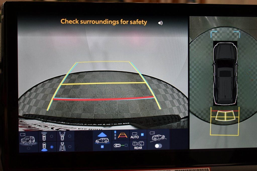 40. The Panoramic View Monitor does not provide a comprehensive view of the area surrounding your vehicle. Look around to confirm clearance. See Owner’s Manual for limitations.