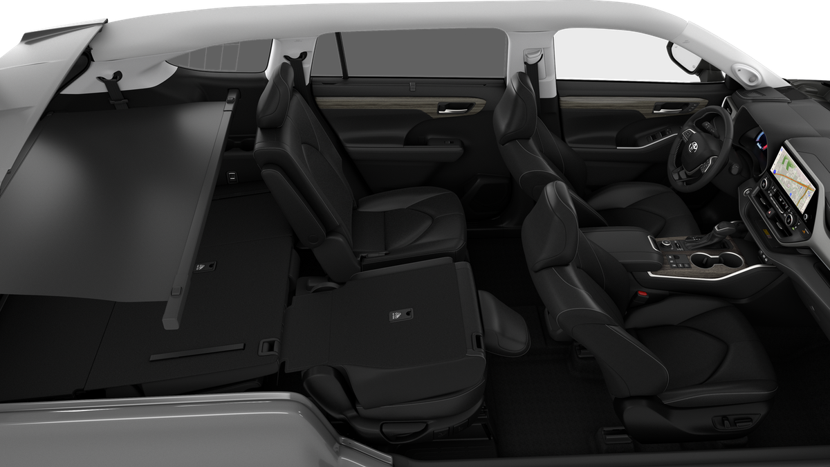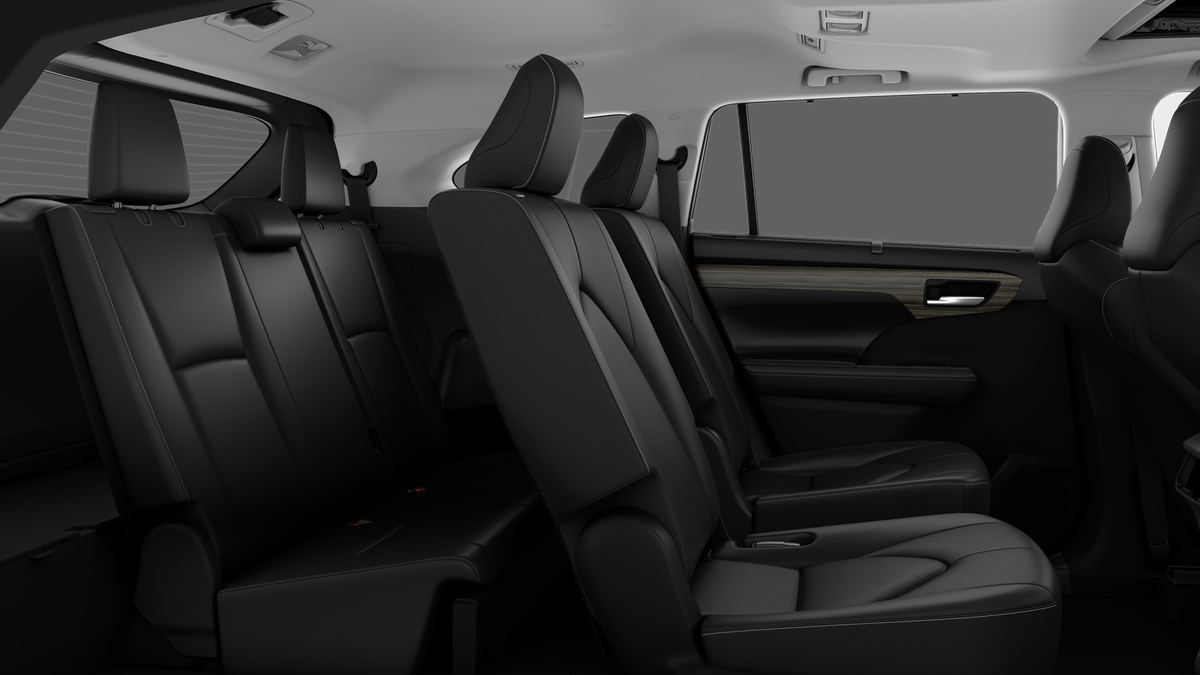 • 7-passenger seating with second-row fold-down captain's chairs and fold-down inboard armrests, adjustable headrests and two cup holders mounted on the floor; and 60/40 split, fold-flat third-row seats with sliding headrests and recline function