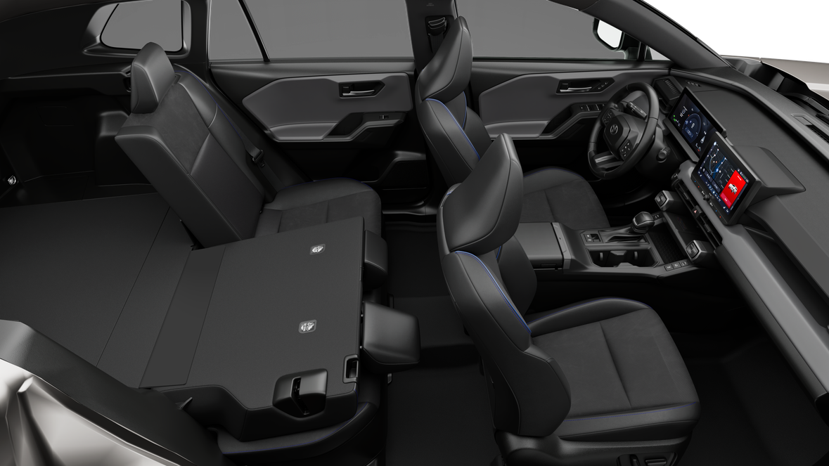 - 60/40 split reclining fold-flat rear seat with center armrest and cup holders