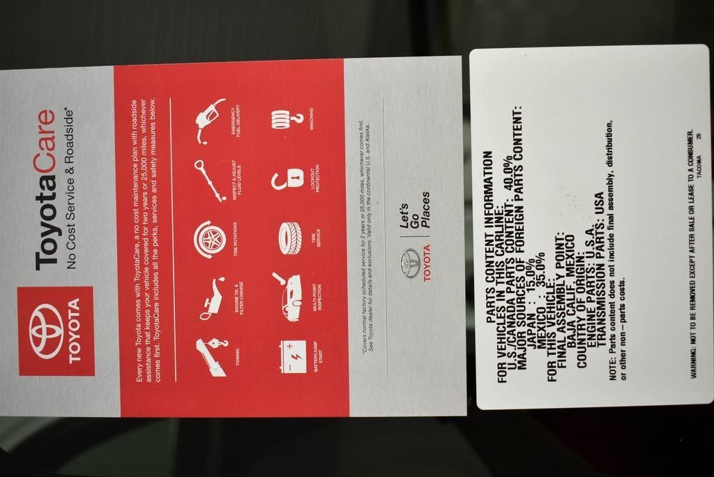 65. ToyotaCare covers normal factory scheduled maintenance for 1 year or 10,000 miles, whichever comes first, and 24/7 Roadside Assistance is for 2 years/unlimited mileage, with the following exceptions: (1) ToyotaCare for Mirai is 3 years/35,000 miles and ToyotaCare for vehicle model years 2026 and earlier is 2 years/25,000 miles; and (2) Roadside Assistance for Mirai, Prius, Toyota BEVs and PHEVs is 3 years/unlimited mileage. Roadside Assistance does not include parts and fluids, except limited emergency gas delivery. Towing distance up to 25 miles. Restrictions apply. ToyotaCare valid only in the continental U.S.; Roadside Assistance valid in continental U.S., Hawaii and Canada. See Toyota dealer for details and exclusions.