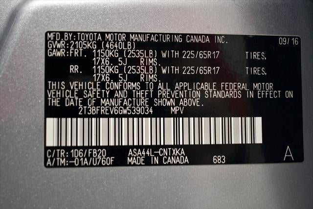 2.5L 4-Cylinder DOHC Dual VVT-i 6-Speed Automatic AWD 22/29 City/Highway MPG AWD, Black w/Fabric Seat Trim, 4-Wheel Disc Brakes, 4.071 Axle Ratio, 6 Speakers, ABS brakes, Air Conditioning, All Weather Floor Liners & Cargo Tray, AM/FM radio, Brake assist, Bumpers: body-color, CD player, Driver door bin, Driver vanity mirror, Dual front impact airbags, Dual front side impact airbags, Electronic Stability Control, Exterior Parking Camera Rear, Fabric Seat Trim, Four wheel independent suspension, Front anti-roll bar, Front Bucket Seats, Front Center Armrest, Front reading lights, Illuminated entry, Knee airbag, Low tire pressure warning, Occupant sensing airbag, Outside temperature display, Overhead airbag, Overhead console, Panic alarm, Passenger door bin, Passenger vanity mirror, Power door mirrors, Power steering, Power windows, Radio data system, Radio: Entune AM/FM/CD/MP3/WMA Playback w/6 Speakers, Rear anti-roll bar, Rear seat center armrest, Rear window defroster, Rear window wiper, Remote keyless entry, Roof rack: rails only, Speed control, Speed-sensing steering, Split folding rear seat, Spoiler, Steering wheel mounted audio controls, Tachometer, Telescoping steering wheel, Tilt steering wheel, Traction control, Trip computer, and Wheels: 17 x 6.5J.