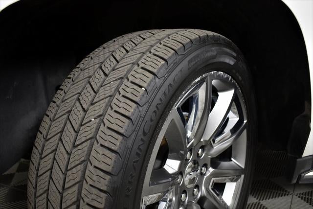 EcoTec3 5.3L V8 6-Speed Automatic Electronic with Overdrive RWD 16/23 City/Highway MPG Enhanced Driver Alert Package (Y86) (Forward Collision Alert Sensor Indicator, IntelliBeam Headlamps, Lane Keep Assist, and Low Speed Forward Automatic Braking), Magnetic Ride Control Suspension Package, Max Trailering Package (Integrated Trailer Brake Controller), Preferred Equipment Group 1LZ (1st & 2nd Row Color-Keyed Carpeted Floor Mats, 3rd Row 60/40 Power Fold Split-Bench, 4-Wheel Antilock Disc Brakes w/Brake Assist, Auto-Dimming Inside Rear-View Mirror, Black Assist Steps w/Chrome Accent Strip, Bose Centerpoint Premium 10-Speaker Surround Sound, Color-Keyed Carpeting Floor Covering, Driver Inboard & Front Passenger Airbags, Electronic Cruise Control w/Set & Resume Speed, Enhanced Driver Information Center, Floor Console, Fog Lamps, Front & Rear Parking Assist, Hands Free Power Liftgate, Heated 2nd Row Seats, Heated Leather Wrapped Steering Wheel, Memory Settings, NavTraffic, OnStar Basic Plan For 5 Years, Passive Entry System, Power Release 2nd Row Bucket Seats, Power Tilt & Telescopic Steering Column, Power-Adjustable Accelerator & Brake Pedals, Power-Folding Heated Outside Mirrors, Push Button Keyless Start, Rear Cross-Traffic Alert, Remote Keyless Entry, Remote Vehicle Start, Roof-Mounted Luggage Rack Side Rails, Side Blind Zone Alert w/Lane Change Alert, SiriusXM Satellite Radio, Universal Home Remote, and Wireless Charging), Sun, Entertainment & Destinations Package (Power Sunroof and Rear Seat Blu-Ray/DVD Entertainment System), Cocoa/Dune w/Leather-Appointed Seat Trim, 10 Speakers, 3rd row seats: split-bench, 4-Wheel Disc Brakes, 5 12-Volt Auxiliary Power Outlets, 6-Way Power Front Passenger Seat Adjuster, ABS brakes, Adaptive suspension, Adjustable pedals, Air Conditioning, Alloy wheels, AM/FM radio: SiriusXM, Apple CarPlay/Android Auto, Auto High-beam Headlights, Auto-dimming door mirrors, Auto-dimming Rear-View mirror, Automatic temperature control, Bodyside moldings, Brake assist, Bumpers: body-color, Cargo Net, CD player, Compass, Delay-off headlights, Driver door bin, Driver vanity mirror, Dual front impact airbags, Dual front side impact airbags, Electronic Stability Control, Emergency communication system: OnStar Guidance, Exterior Parking Camera Rear, Front anti-roll bar, Front Bucket Seats, Front Center Armrest, Front dual zone A/C, Front fog lights, Front Heated Reclining Bucket Seats, Front reading lights, Front wheel independent suspension, Fully automatic headlights, Garage door transmitter, Head-Up Display, Heated & Vented Driver & Front Passenger Seats, Heated door mirrors, Heated front seats, Heated rear seats, Heated steering wheel, High-Intensity Discharge Headlights, Illuminated entry, Low tire pressure warning, Memory seat, Navigation System, Occupant sensing airbag, Outside temperature display, Overhead airbag, Overhead console, Panic alarm, Passenger door bin, Passenger vanity mirror, Pedal memory, Perforated Leather-Appointed Seat Trim, Power door mirrors, Power driver seat, Power Liftgate, Power passenger seat, Power steering, Power windows, Premium audio system: Chevrolet MyLink, Radio: Chevrolet MyLink w/Nav/AM/FM Stereo, Rain sensing wipers, Rear air conditioning, Rear anti-roll bar, Rear reading lights, Rear window defroster, Rear window wiper, Remote keyless entry, Roof rack: rails only, Security system, Single-Slot CD/MP3 Player, Speed control, Speed-sensing steering, Split folding rear seat, Spoiler, Steering wheel memory, Steering wheel mounted audio controls, Tachometer, Telescoping steering wheel, Tilt steering wheel, Traction control, Trip computer, Turn signal indicator mirrors, Variably intermittent wipers, Ventilated front seats, Voltmeter, Wheels: 20 x 9 Polished-Aluminum, and Wheels: 22 Premium Painted w/Chrome Inserts.