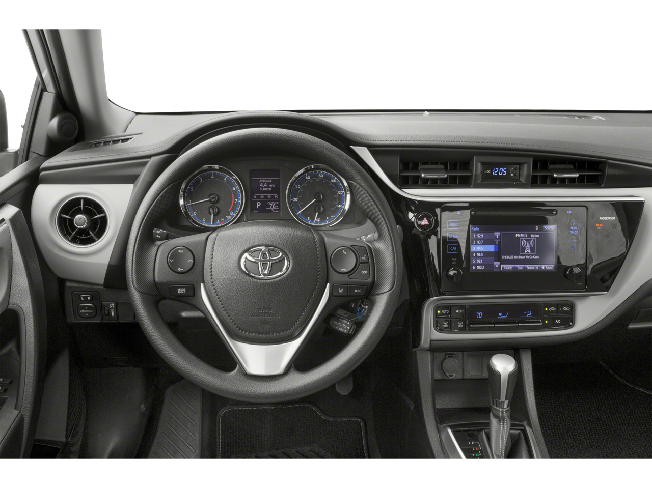 1.8L I4 DOHC CVT FWD 28/35 City/Highway MPG Carpet Mat Package (TMS), 4-Wheel Disc Brakes, 6 Speakers, ABS brakes, Air Conditioning, Alloy wheels, AM/FM radio, Auto High-beam Headlights, Automatic temperature control, Brake assist, Bumpers: body-color, CD player, Delay-off headlights, Driver door bin, Driver vanity mirror, Dual front impact airbags, Dual front side impact airbags, Electronic Stability Control, Exterior Parking Camera Rear, Fabric Seat Trim w/SofTex, Front anti-roll bar, Front Bucket Seats, Front Center Armrest w/Storage, Front reading lights, Front Sport Bucket Seats, Front wheel independent suspension, Fully automatic headlights, Heated door mirrors, Illuminated entry, Knee airbag, Leather steering wheel, Low tire pressure warning, Occupant sensing airbag, Outside temperature display, Overhead airbag, Panic alarm, Passenger door bin, Passenger vanity mirror, Power door mirrors, Power steering, Power windows, Radio data system, Radio: Entune Audio Plus w/Connected Navigation, Radio: Entune Audio w/6.1 Screen, Rear anti-roll bar, Rear Bumper Protector (TMS), Rear seat center armrest, Rear window defroster, Remote keyless entry, Speed control, Speed-sensing steering, Split folding rear seat, Spoiler, Steering wheel mounted audio controls, Tachometer, Telescoping steering wheel, Tilt steering wheel, Traction control, Trip computer, Turn signal indicator mirrors, Variably intermittent wipers, and Wheels: 17 x 7.0 Machined Alloy.