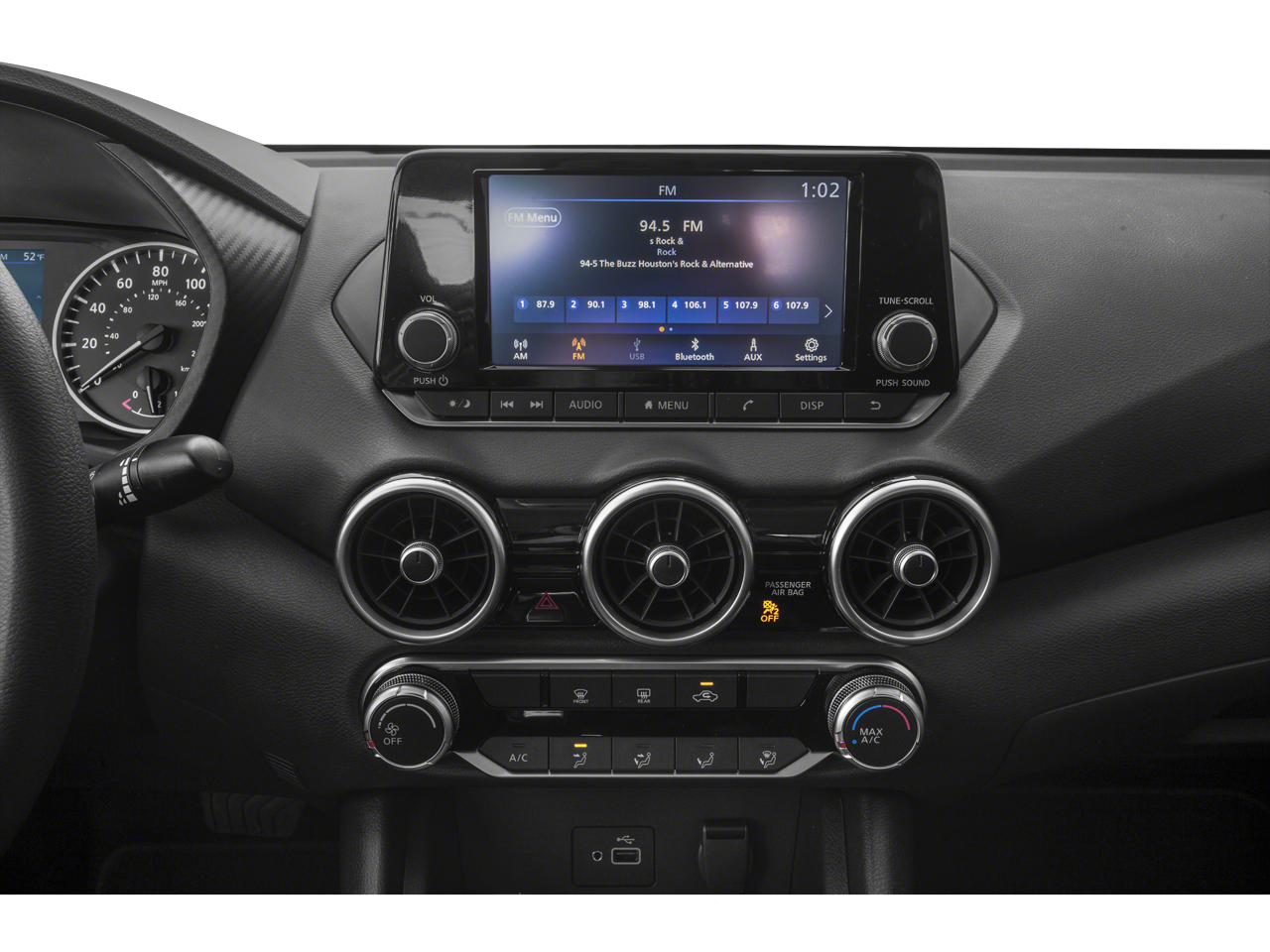 - Radio: AM/FM w/RDS/MP3/Aux-In -inc: 6 speakers, 8" color display w/multi-touch control, streaming audio via Bluetooth®, Bluetooth® hands-free phone system, hands-free text messaging assistant, Siri eyes-free, Google Assistant voice recognition w/Apple CarPlay and Android Auto, NissanConnect, (1) front USB connection port (type A) for iPod interface and other compatible devices, (1) additional front USB (type C) and (1) charge-only USB (type A) center console and SiriusXM radio