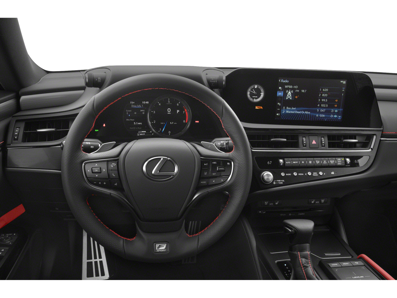Elevate your commute with the heated and ventilated F Sport front seats, the premium leather-trimmed steering wheel and shift knob, and the Hands-Free Power Open/Close Trunk. Stay connected with Apple CarPlay and Android Auto, while the Electrochromatic Rearview Mirror and Wireless Charger add to the vehicle's modern conveniences.