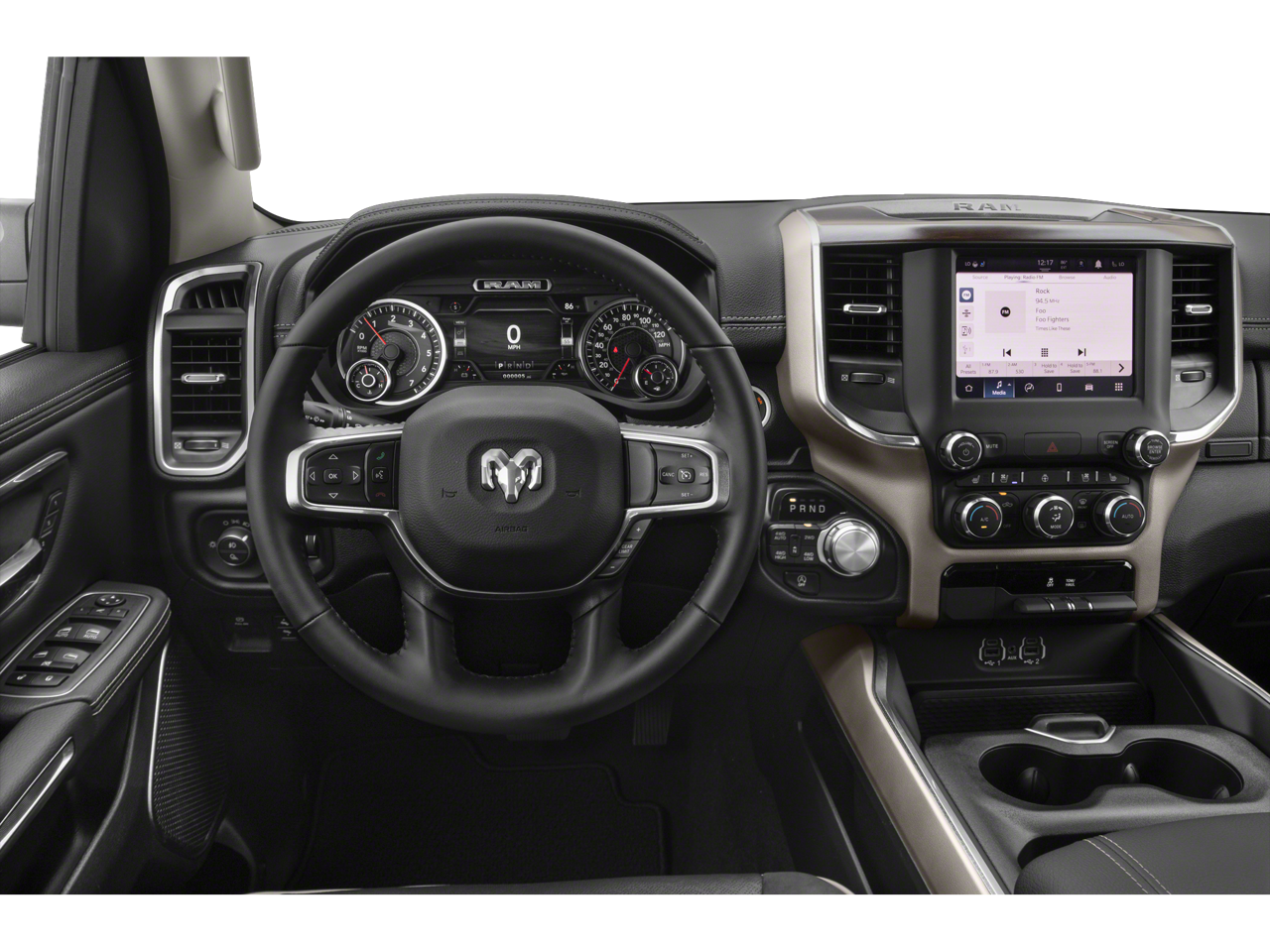For your towing needs, the Trailer Tow Group provides essential features like trailer brake control, trailer light check, and a trailer tire pressure monitoring system. The RamBox Cargo Management System offers secure, weatherproof storage, while the Dual-Pane Panoramic Sunroof floods the cabin with natural light.