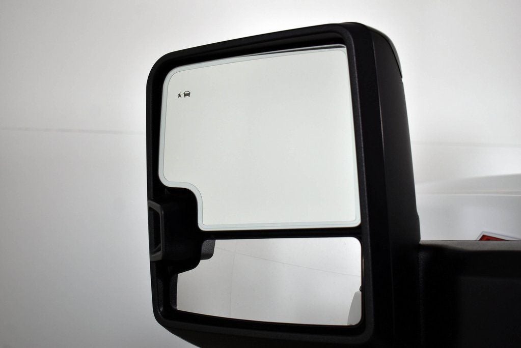 - Mirrors, outside power-adjustable vertical trailering with heated and auto-dimming upper glass, (driver and passenger) lower convex mirrors, turn signal indicators, puddle lamps, perimeter lighting, auxiliary lighting, power folding/extending (extends 3.31" )