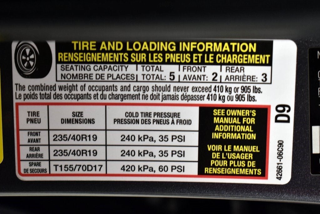 - Front Tire Size: P235/40VR19