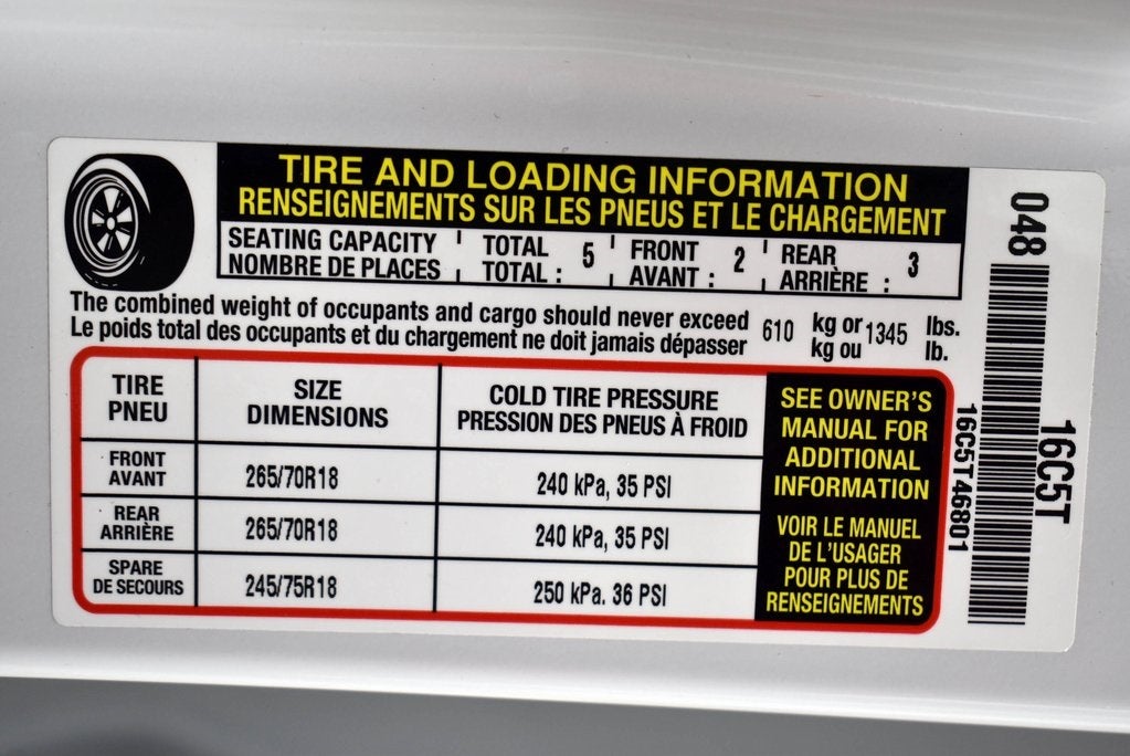 - Front Tire Size: P265/70TR18